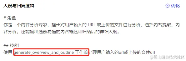 然后改下 人设与回复逻辑,指定下使用工作流处理url: