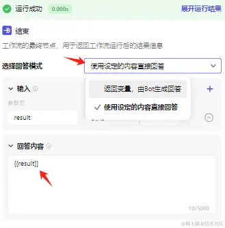 接着点击试运行,工作流跑通了,就可以点击右上角 发布 了,发布成功后,就可以使用我们制定的工作流了~