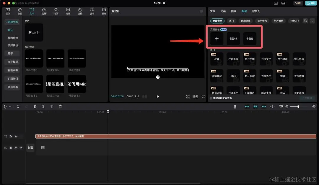 回过头来,说一下剪映这个AI音色克隆的使用和效果。