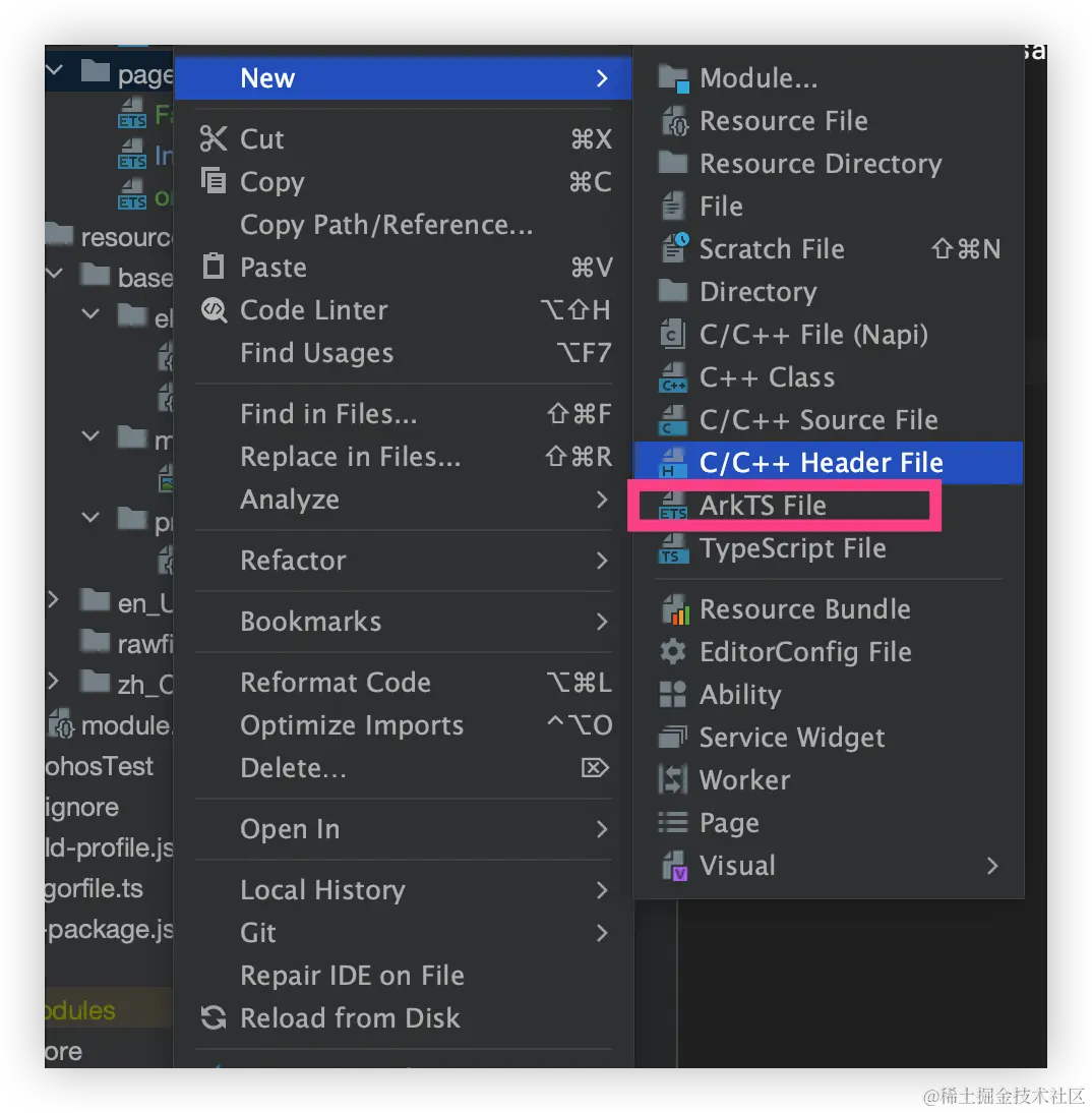 新建第二个页面文件。在“Project”窗口,打开“entry > src > main > ets ”,右键点击“pages”文件夹,选择“New > ArkTS File”,命名为“Face”,点击“Finish”