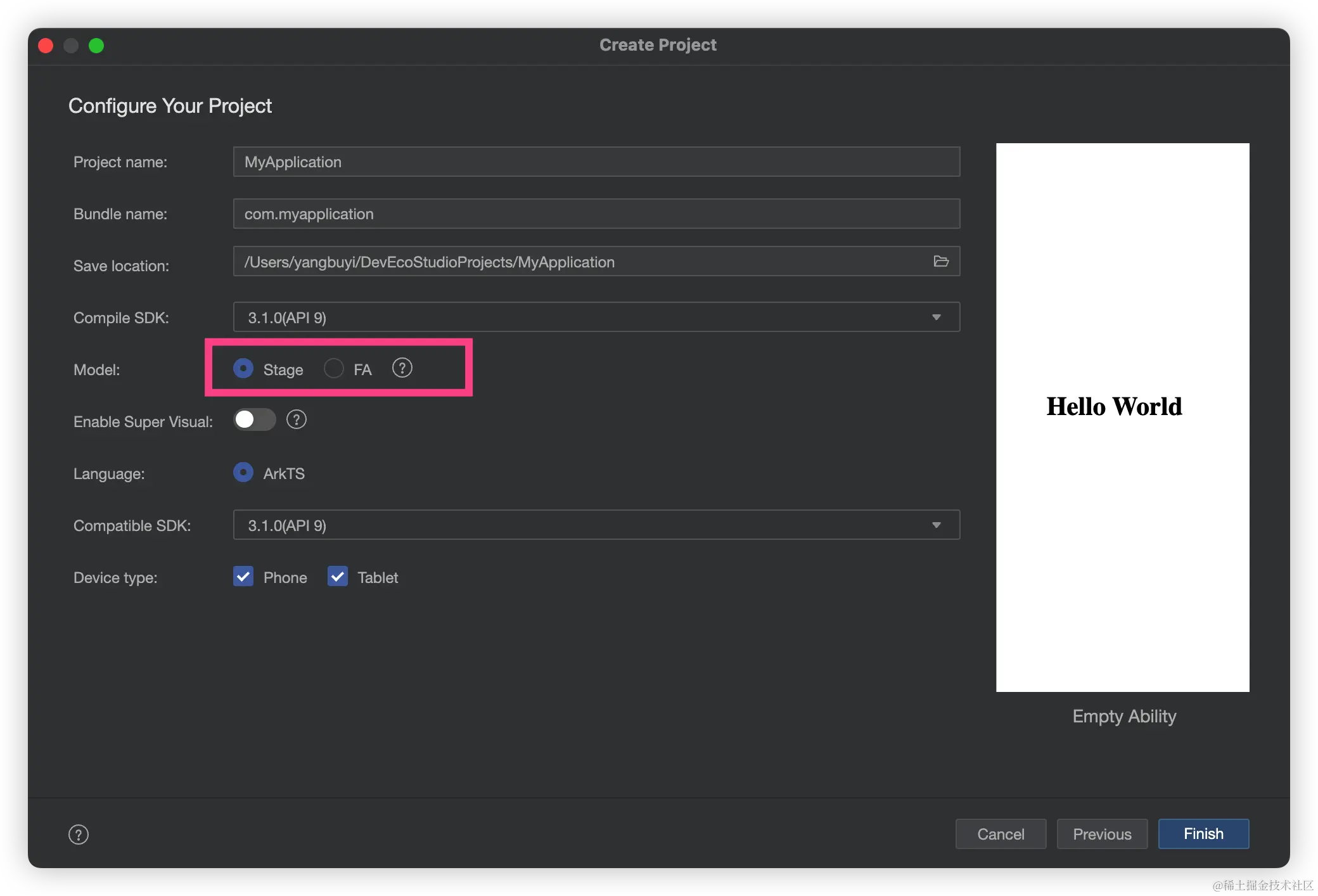 - FA(Feature Ability)模型: HarmonyOS API 7开始支持的模型,已经不再主推。