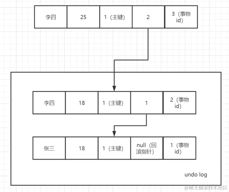 - 多个事务并行操作某一行数据时,不同事务对该行数据的修改会产生多个版本,然后通过回滚指针(DB_ROLL_PTR)连成一条Undo日志链。