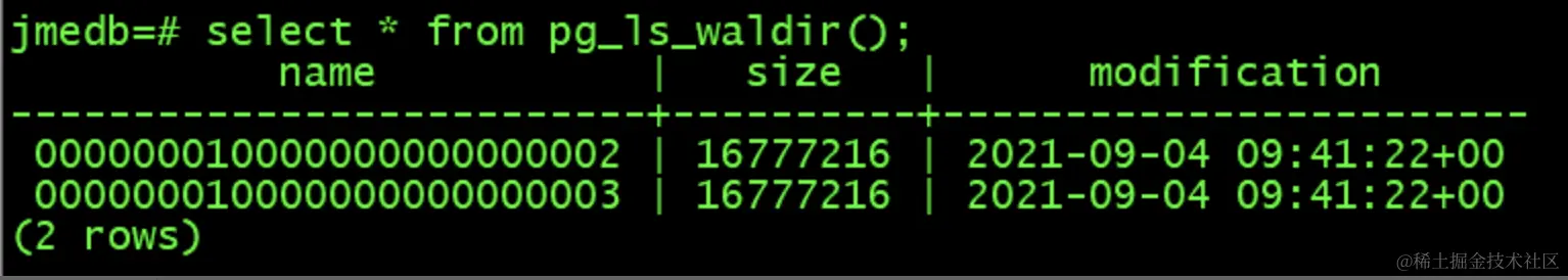 jmedb=# select * from pg_ls_waldir();