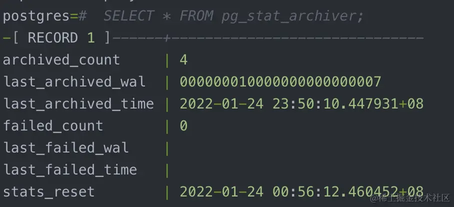 SELECT * FROM pg_stat_archiver;