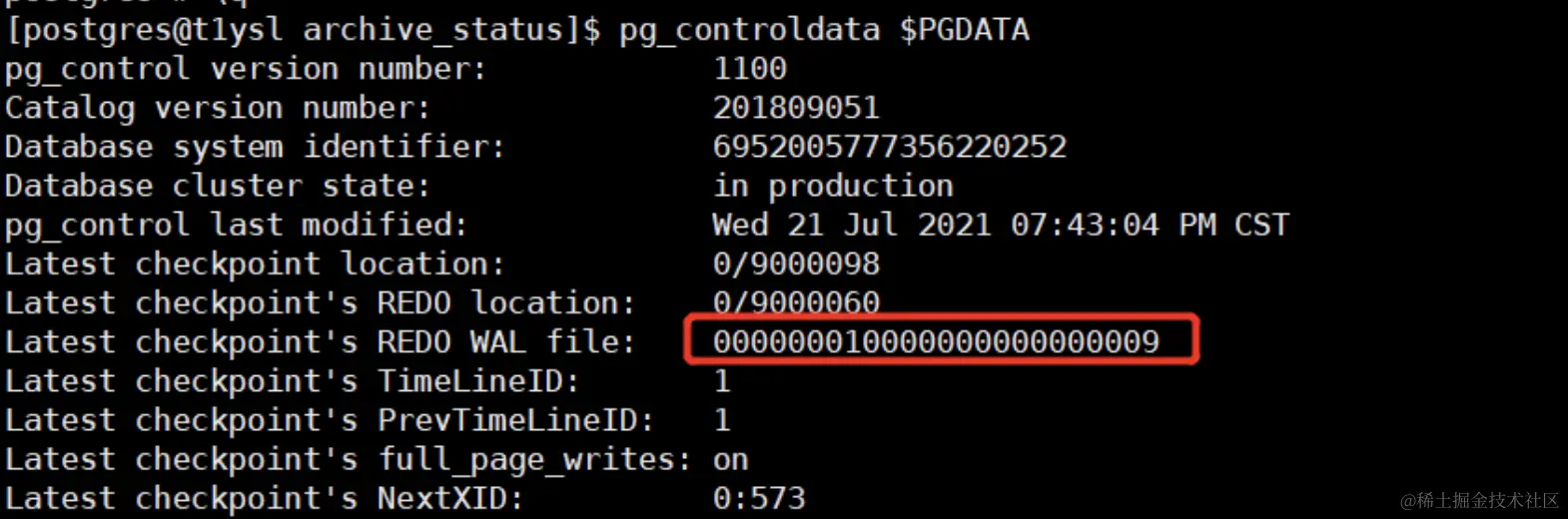 pg_controldata $PGDATA