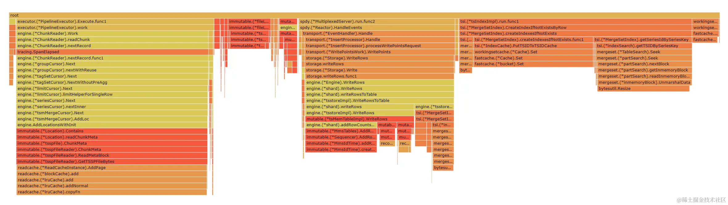 启用sherlock可以保留openGemini服务在发生一些性能瓶颈的时候保留现场,可以通过火焰图找到关键的性能瓶颈在哪,方便分析原因和性能优化。