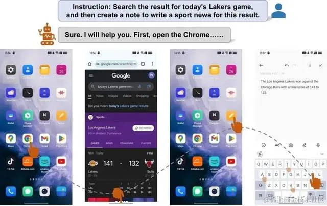 基于感知到的视觉上下文,它会自主规划和分解复杂的操作任务,并逐步导航移动应用程序进行操作。