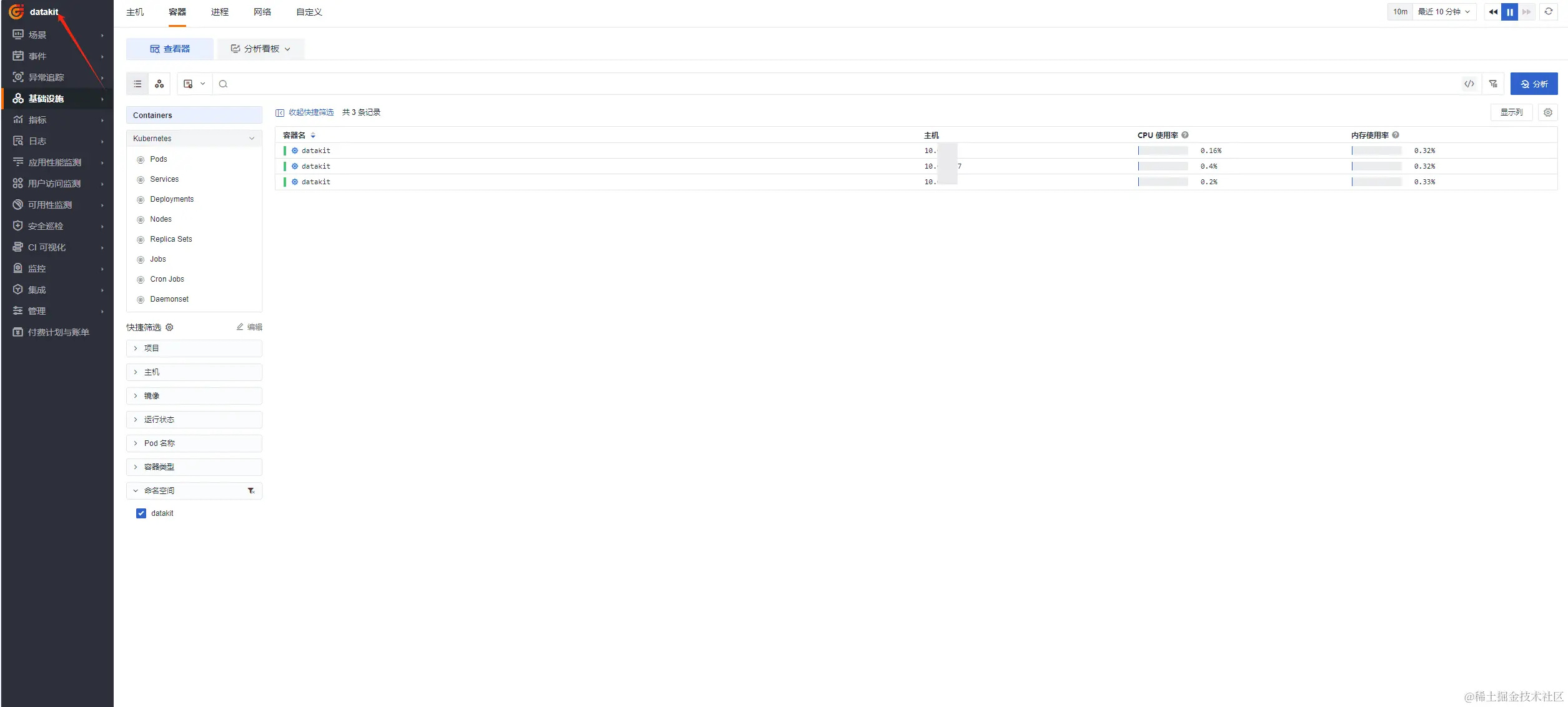前提条件,集群中已经部署了观测云 DataKit 采集器。
