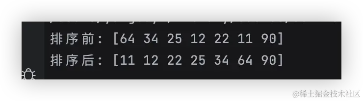 - 在外部循环中,我们使用一个内部循环for j := 0; j < n-i-1; j++来遍历当前未排序部分的每个相邻的两个元素,从第一个元素开始,直到倒数第二个元素。