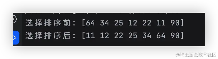 - 在外部循环中,我们初始化一个变量minIndex,它将用于存储当前未排序部分的最小元素的索引。我们将其初始化为当前外部循环的索引i。