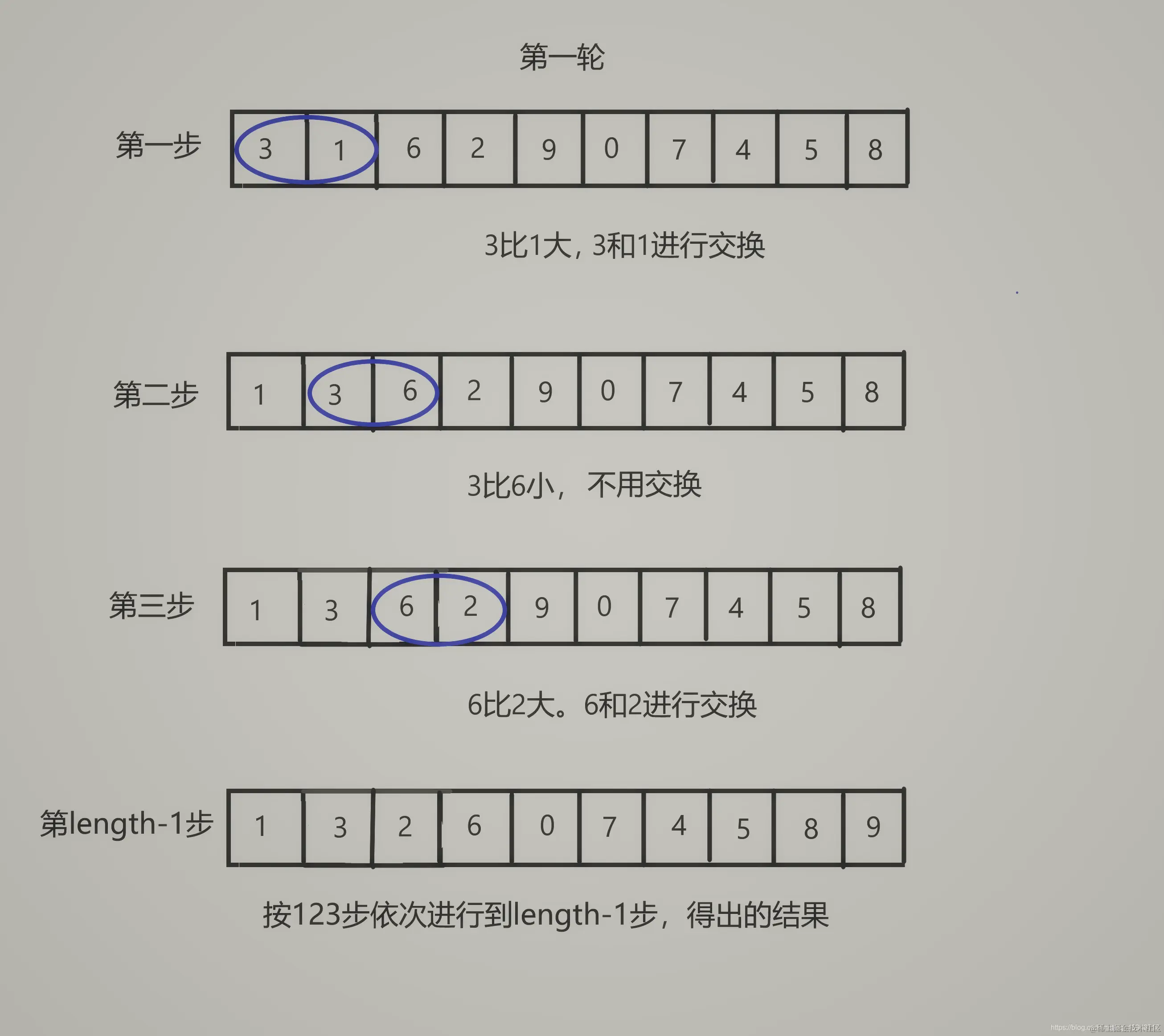 - 内部循环结束后,最大的元素将被移动到数组的末尾。