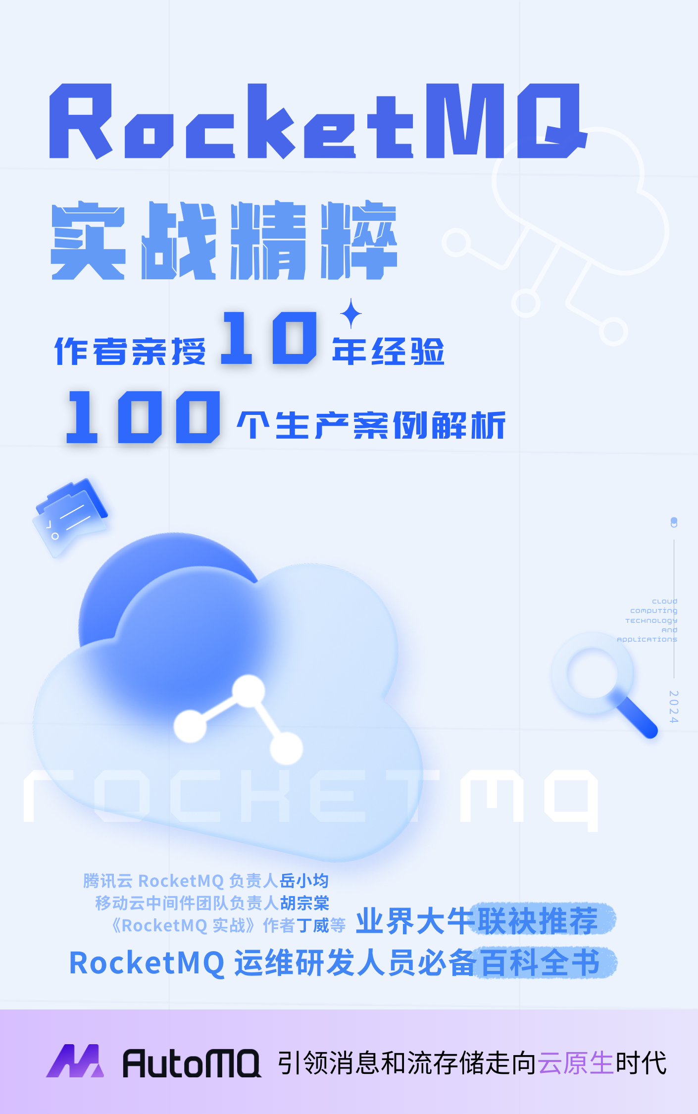 《RocketMQ 实战精粹:100个生产案例解析》浓缩了 RocketMQ 作者以及多位核心开发者十余年的从业经验。本书以生动的案例形式,涵盖了 RocketMQ 在实战应用中可能遇到的各种问题,给出专业的原理剖析、参数建议、实操教程,可以说是 RocketMQ 运维研发人员人手必备的百科全书。