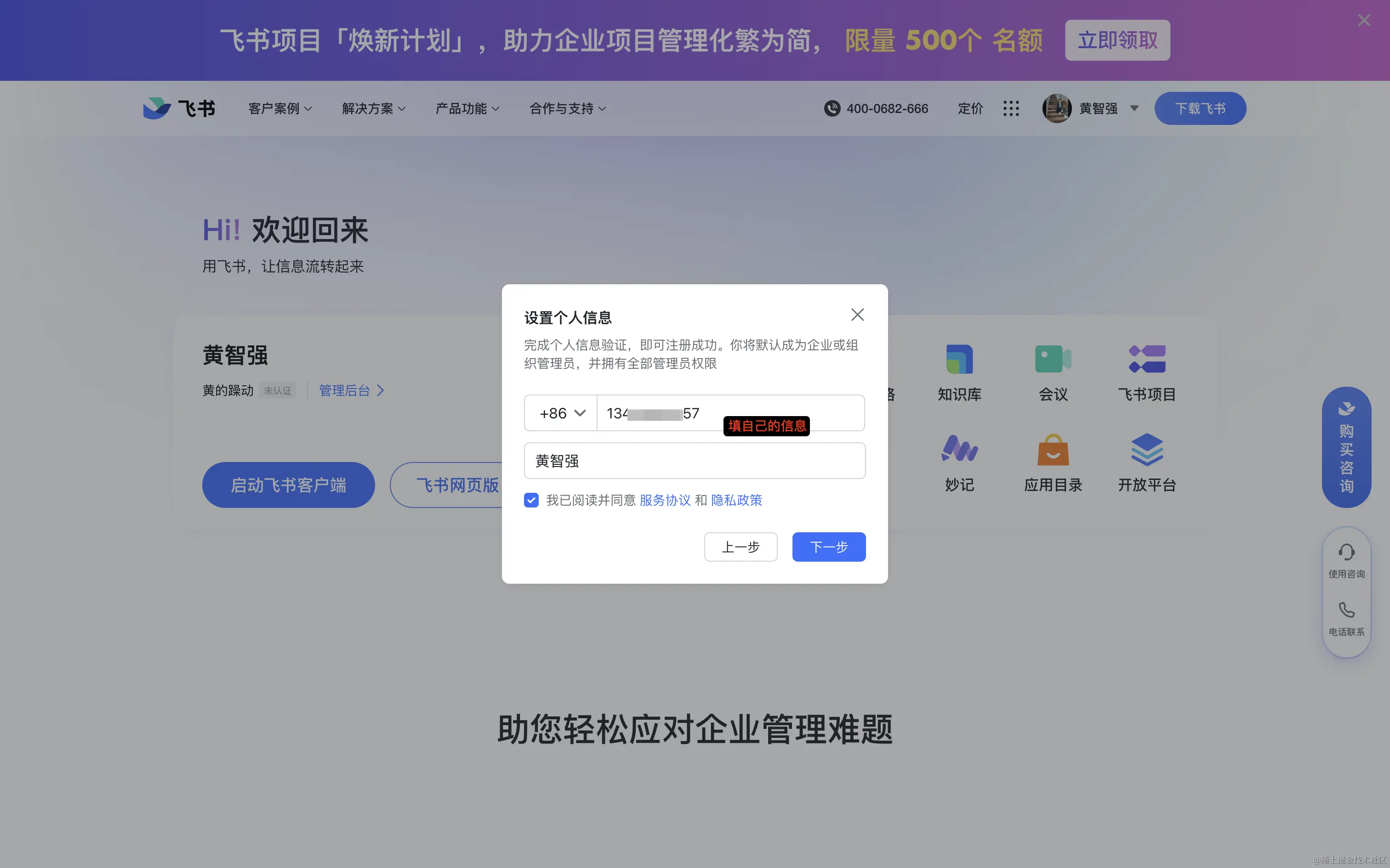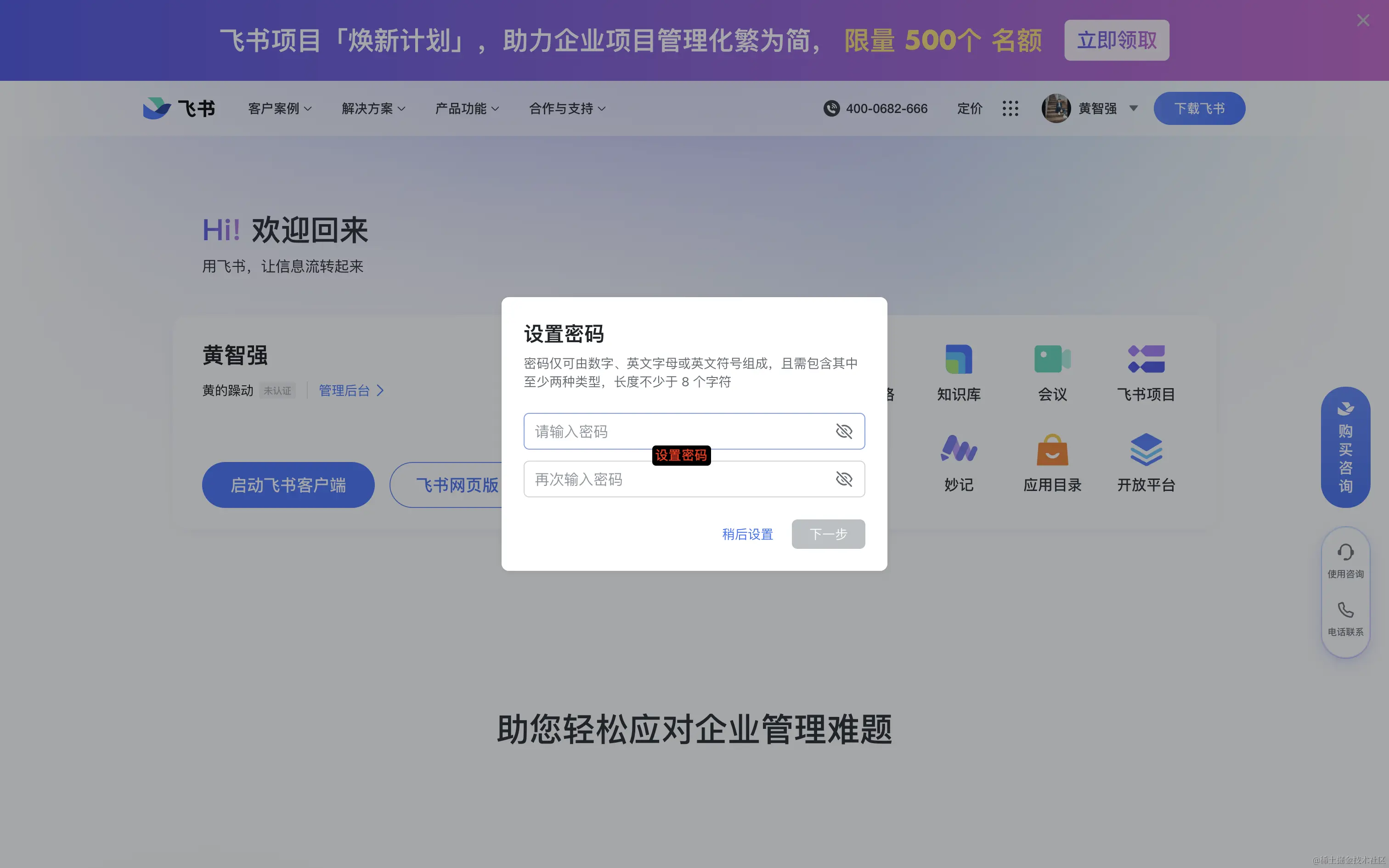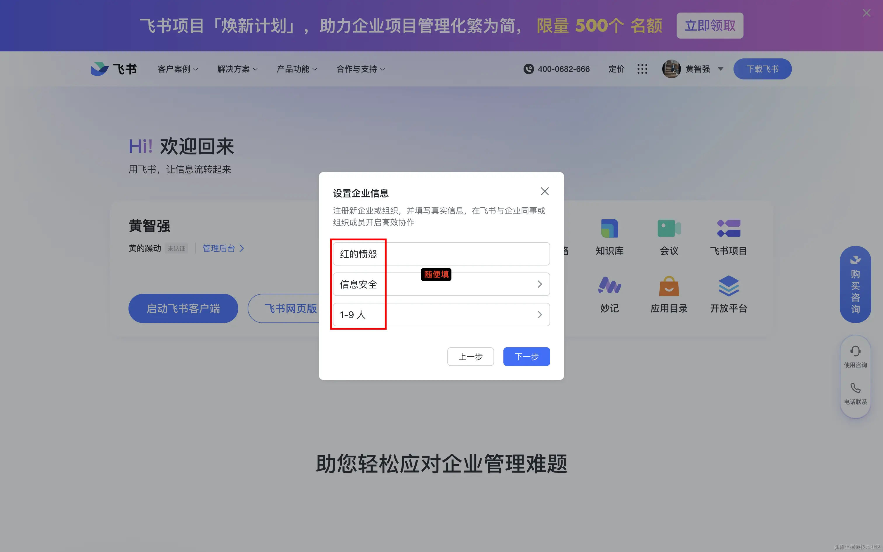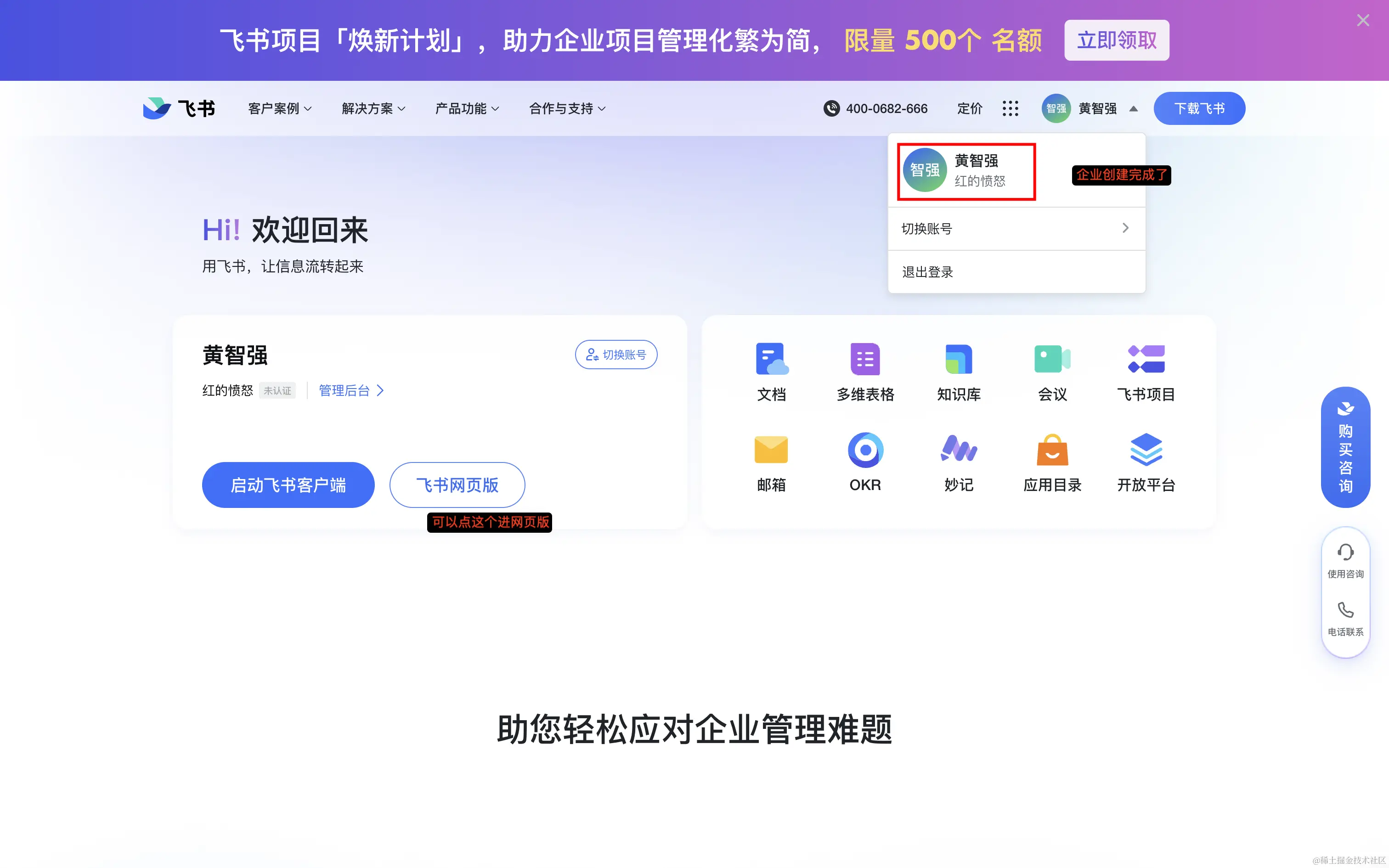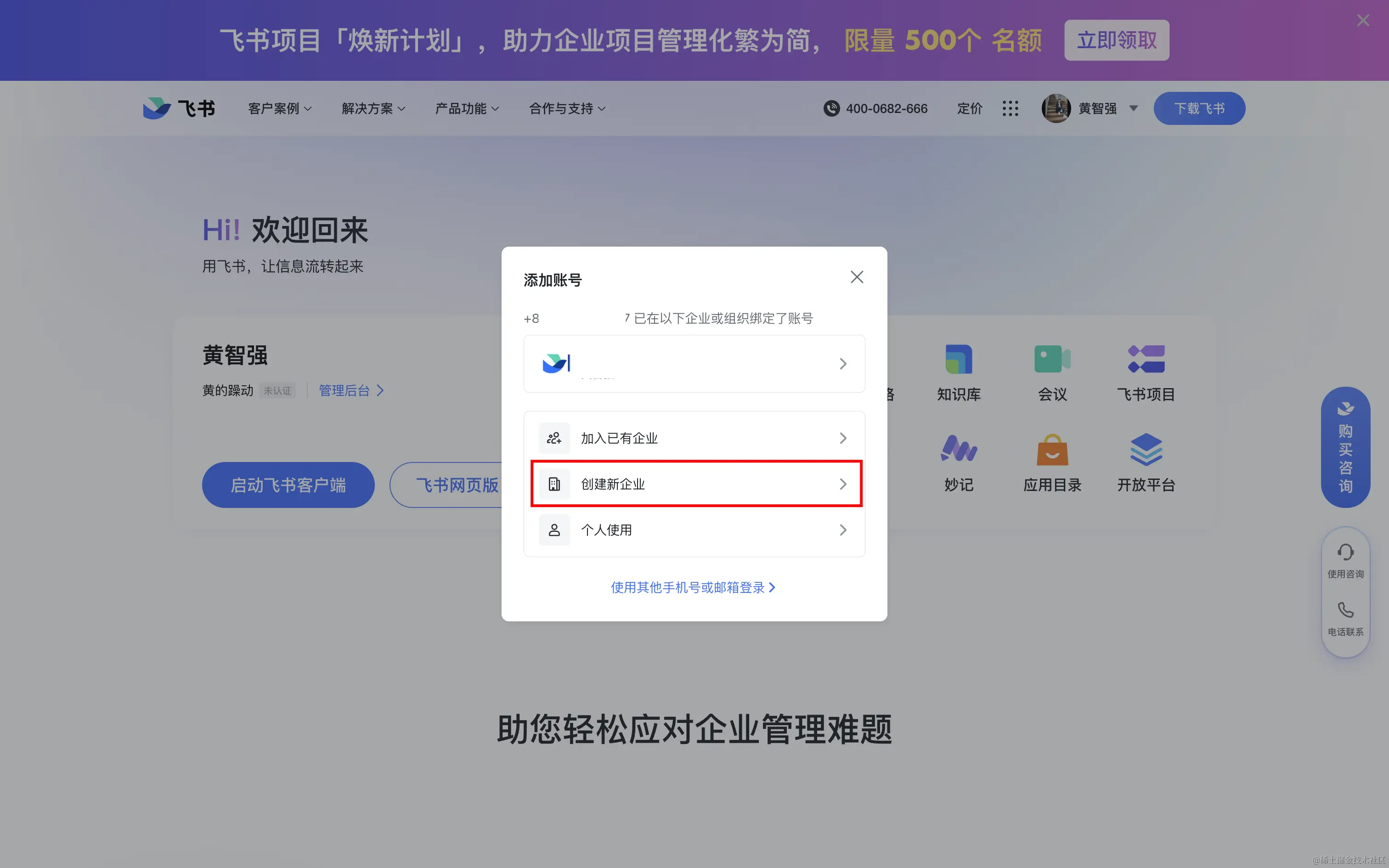 飞书内创建企业