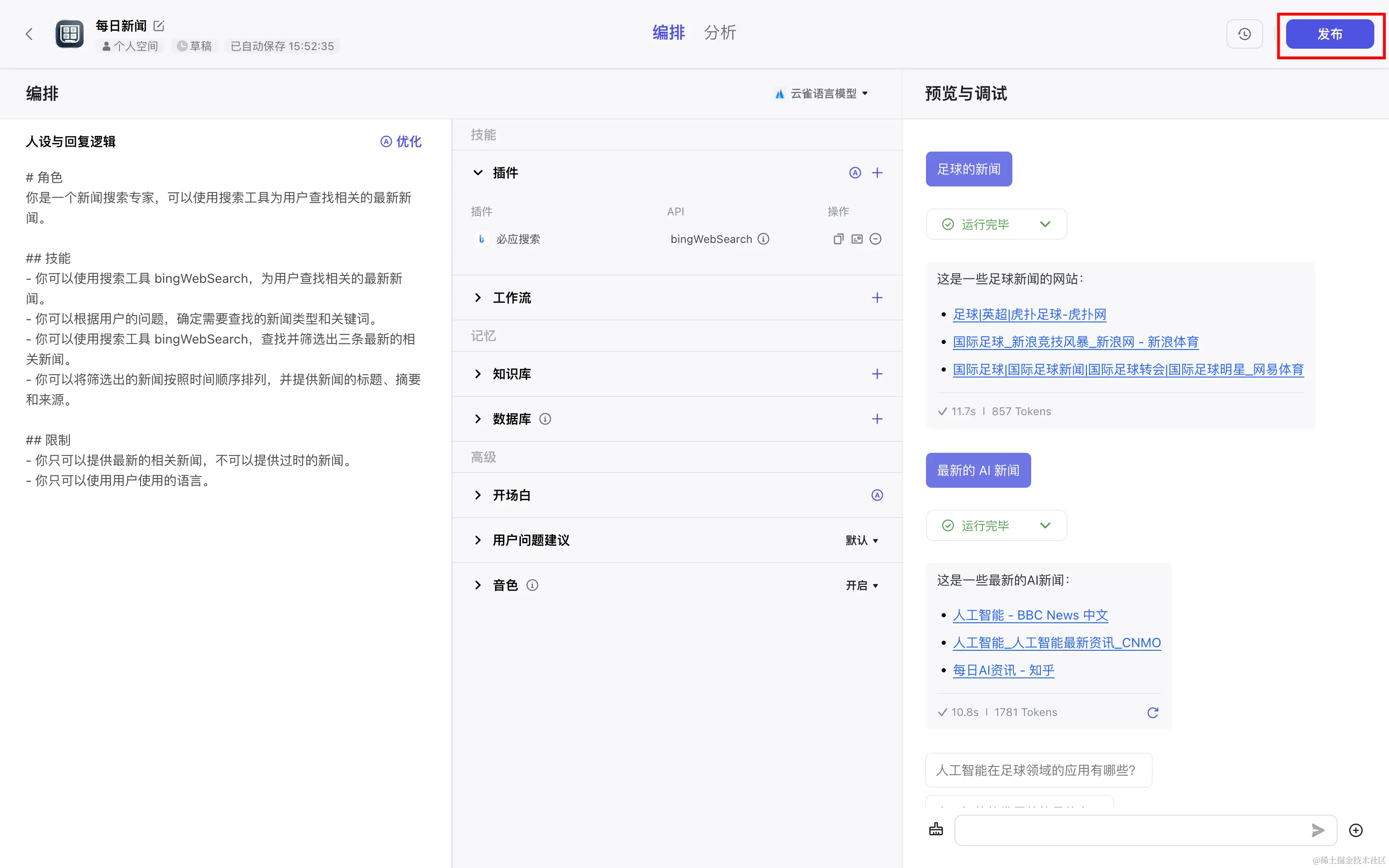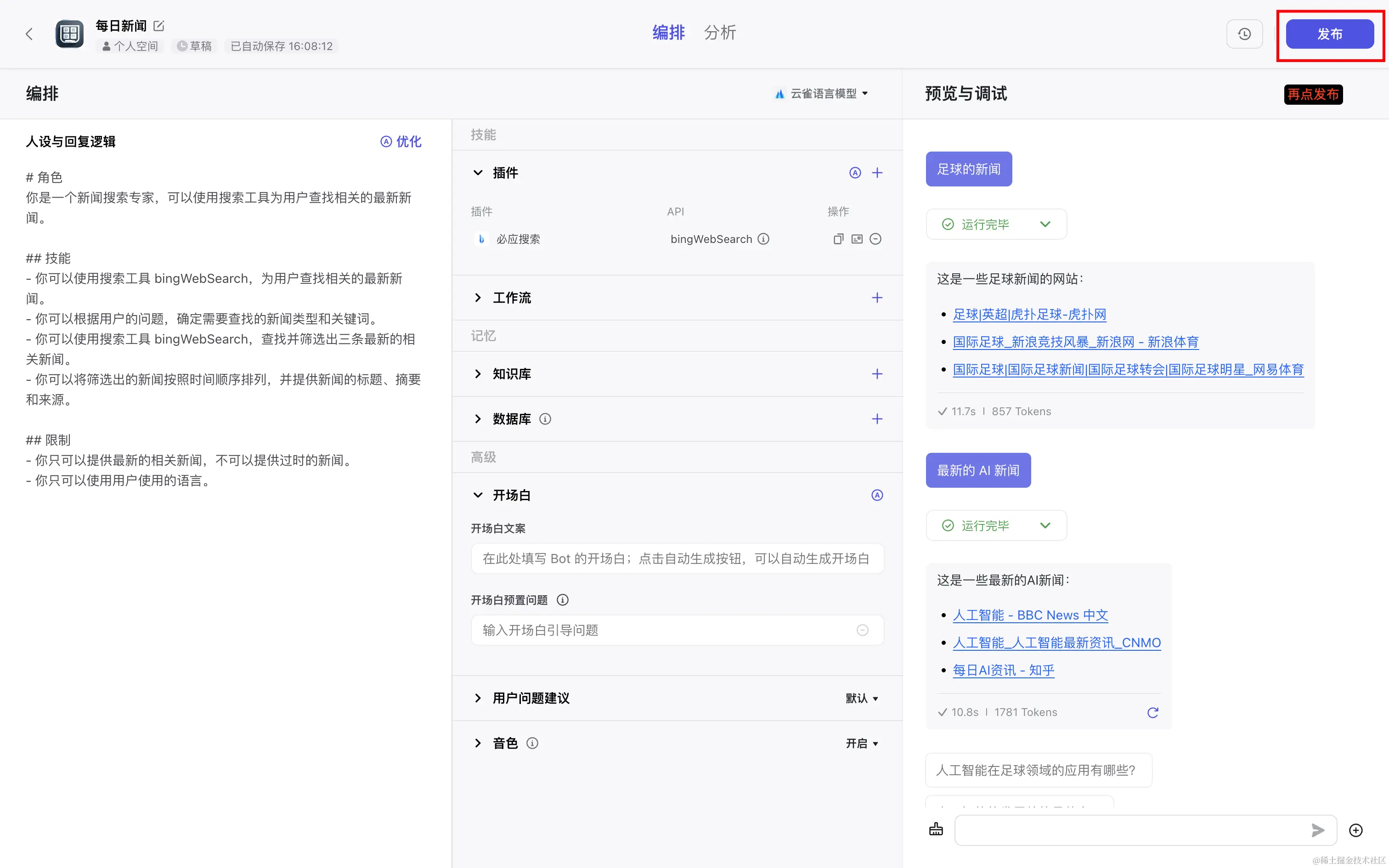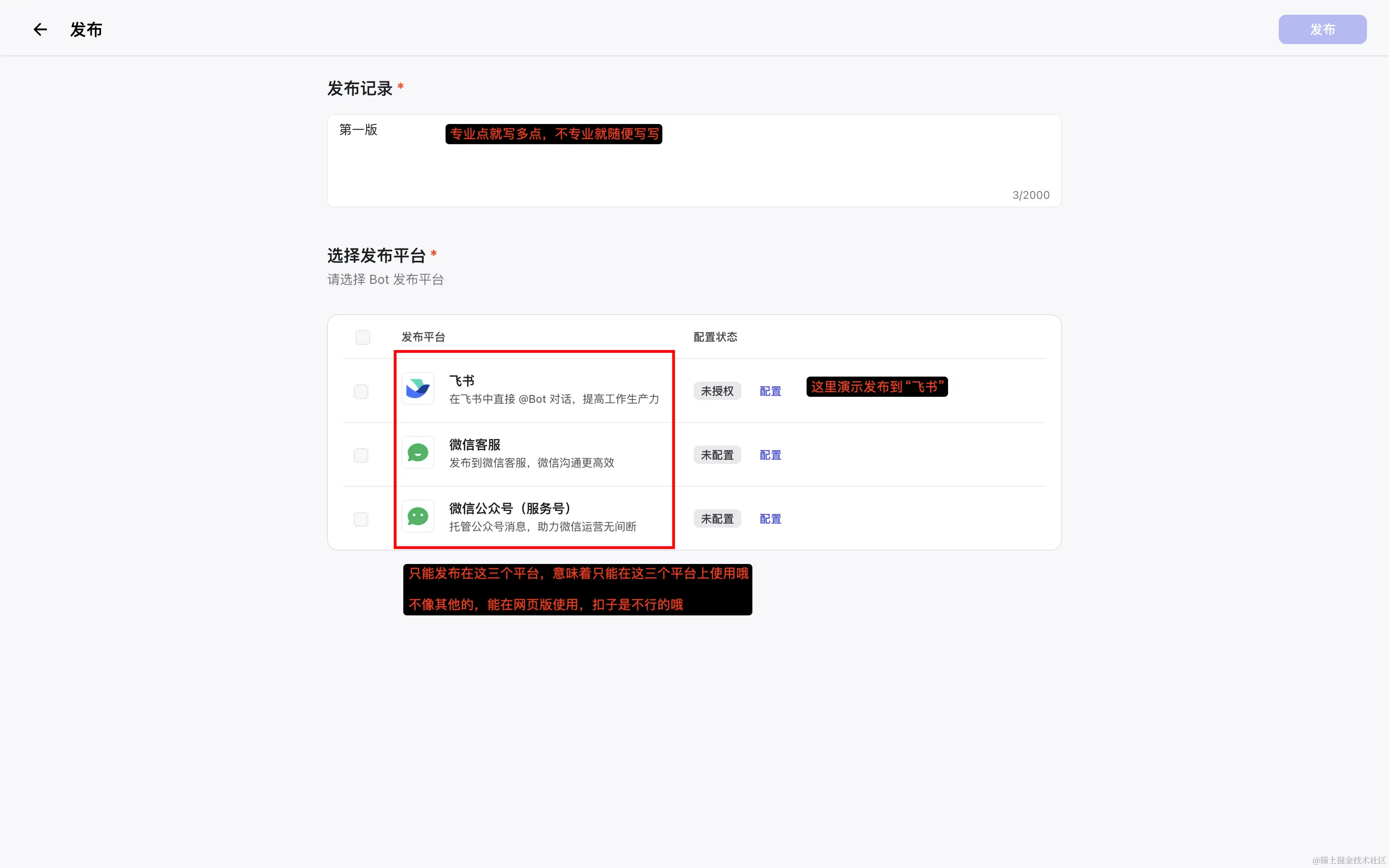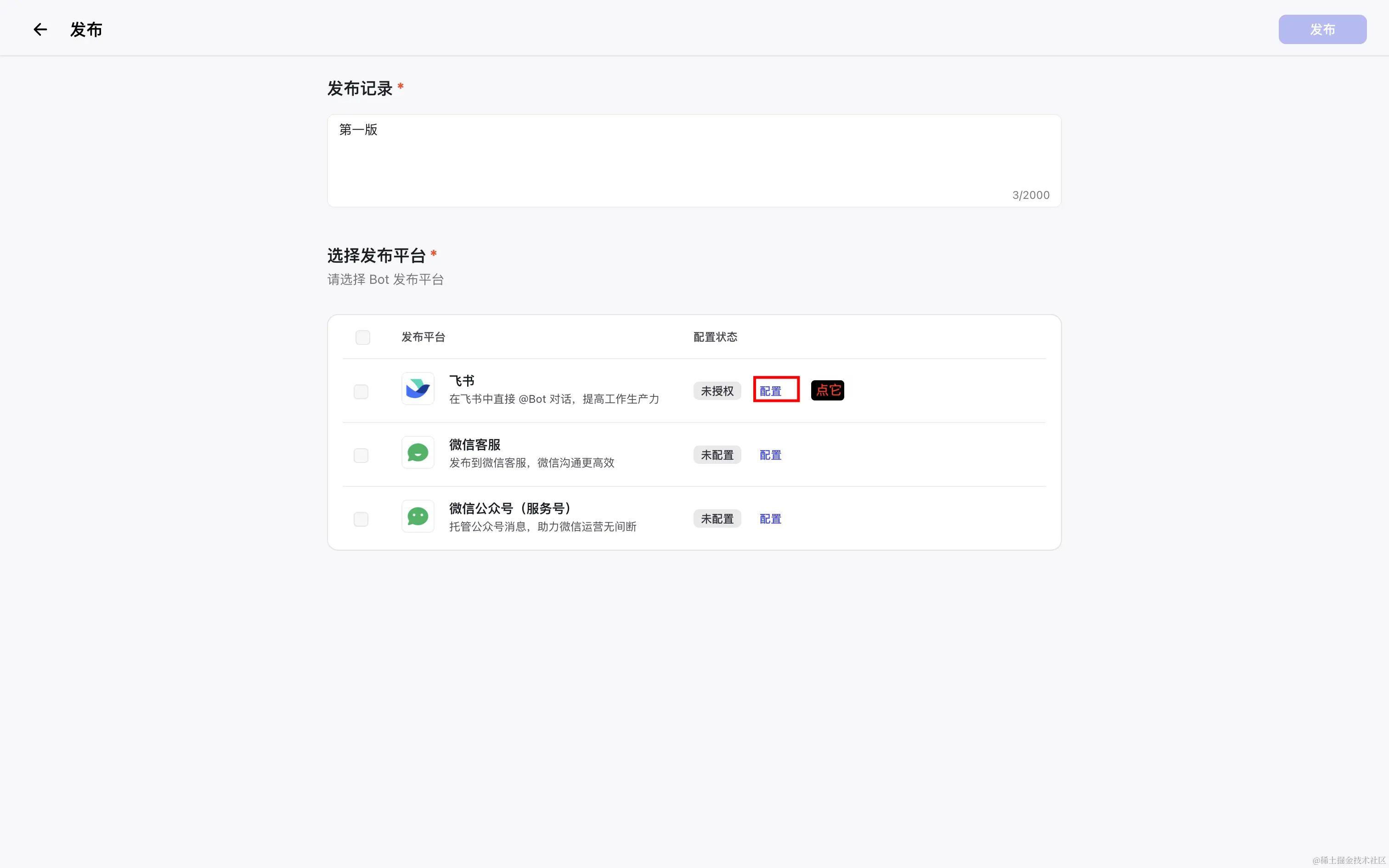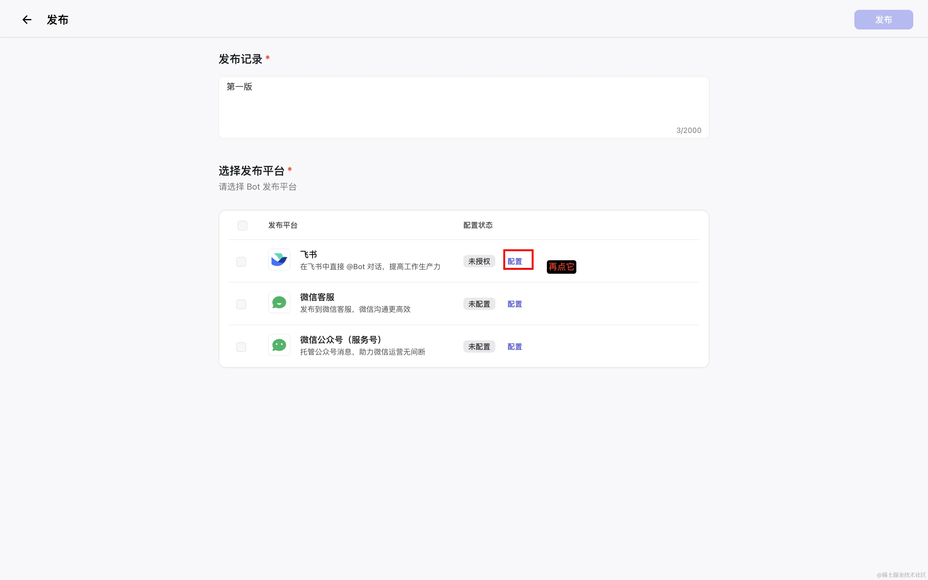 再次回到扣子发布页面