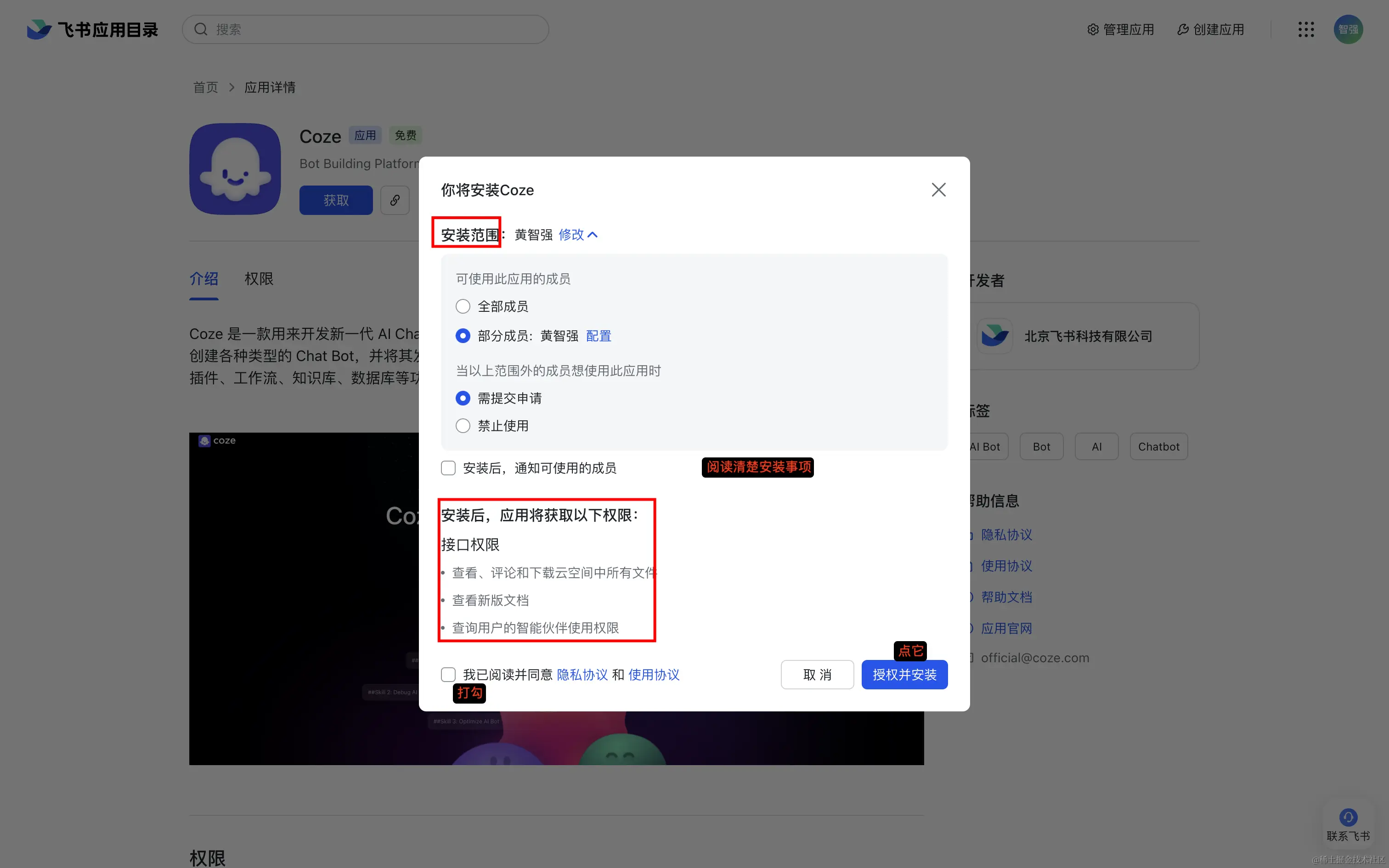 发现昨天我第一次发布扣子时的审核“卡点”没了,所以全新飞书发布扣子的流程跟上面是一样的