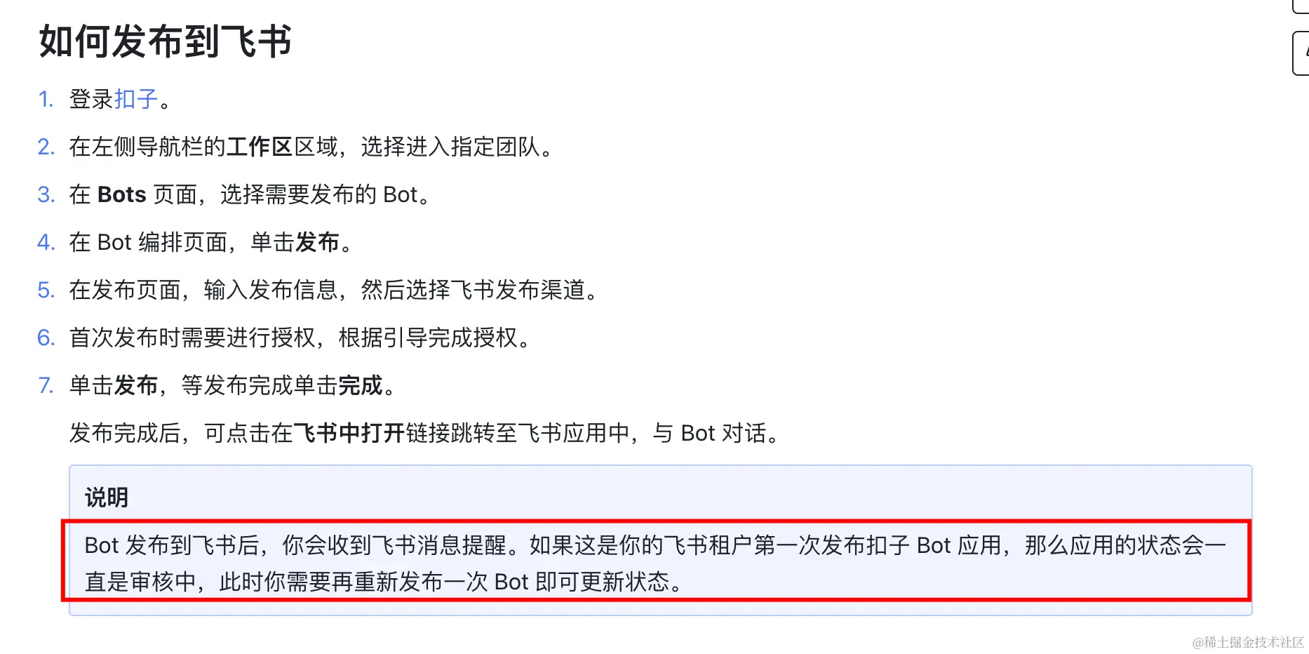 官方文档中心的《如何发布到飞书》