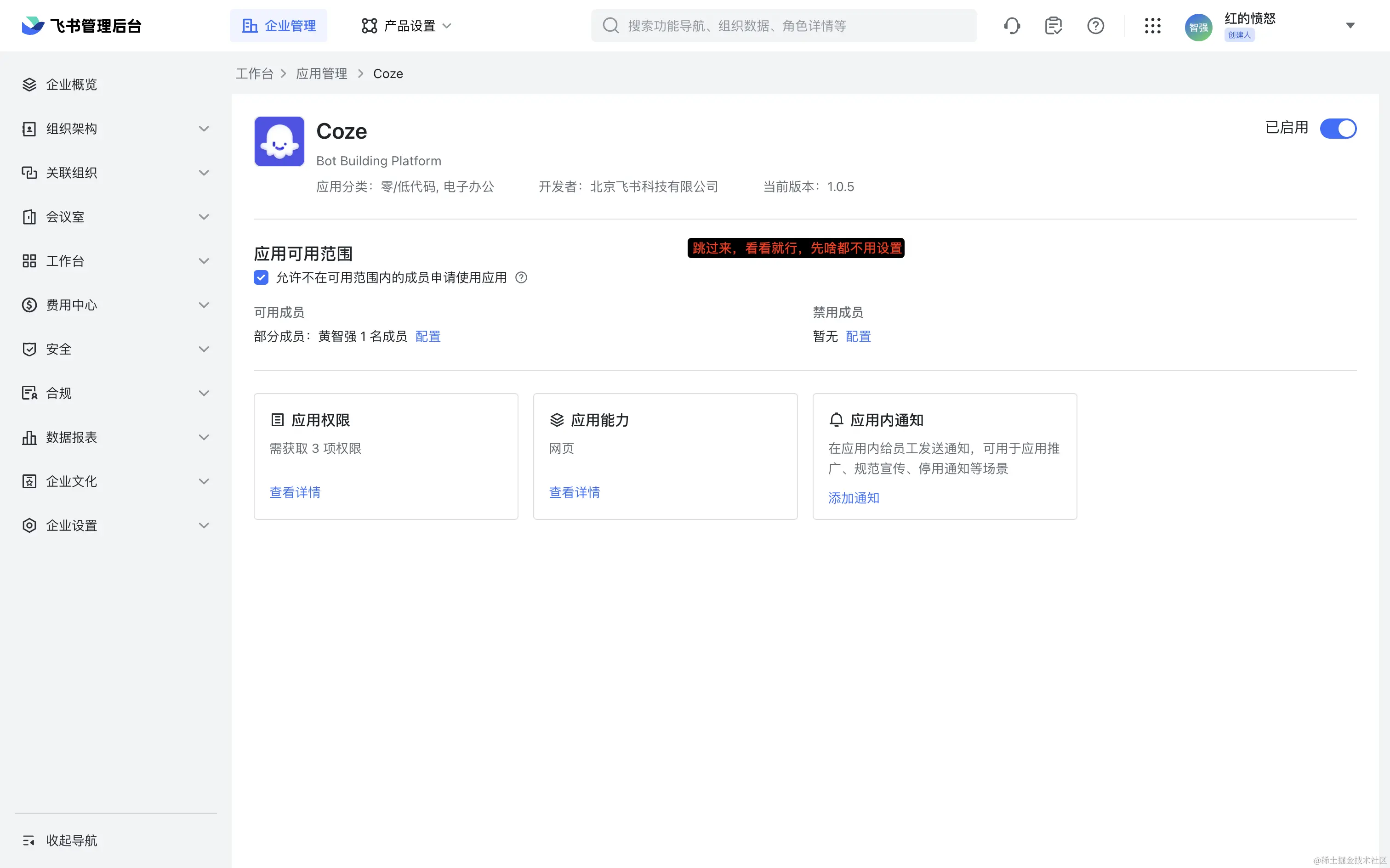 若还是不行,则进入管理后台-应用审核,看看是否有需要待审核的,有的话就点审核通过(我昨天第一次发布扣子时就是这样审核的)