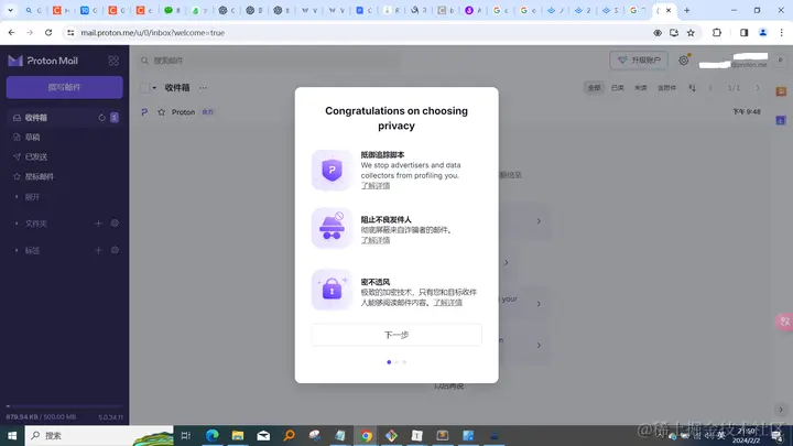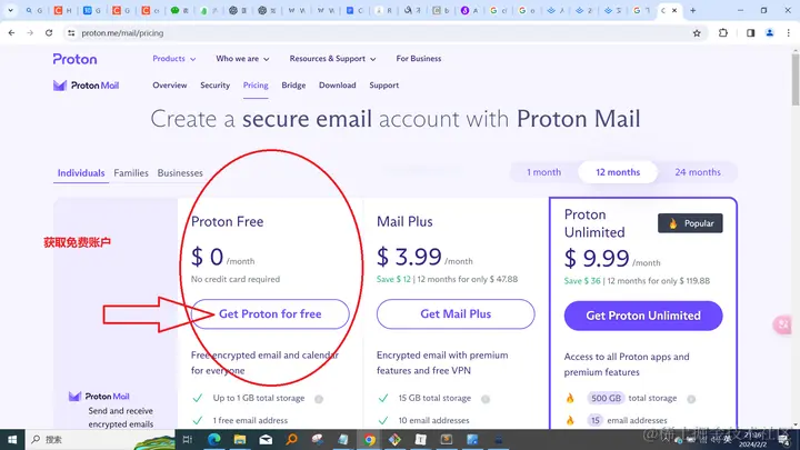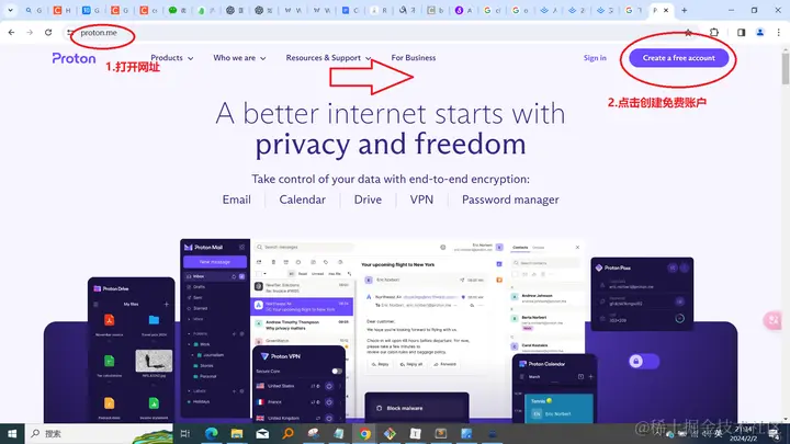 打开链接 proton.me (注意网络环境),