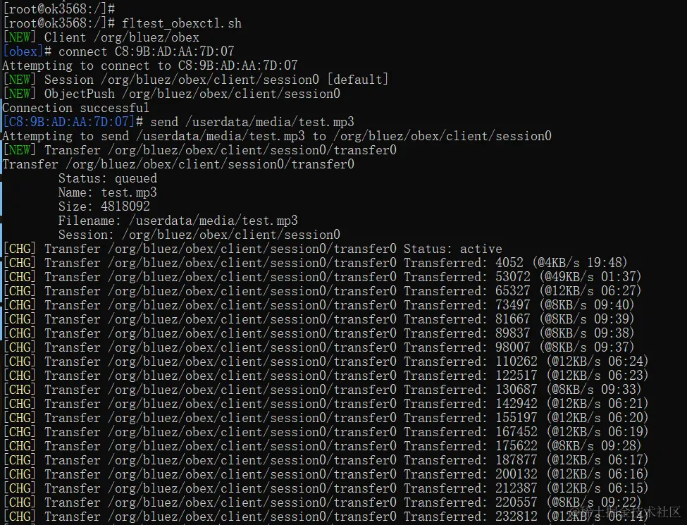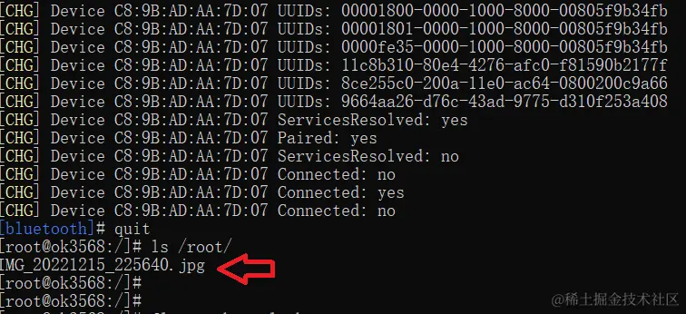 图片传完成后使用如下指令,可以使OK3568-C开发板退出bluetoothctl:
