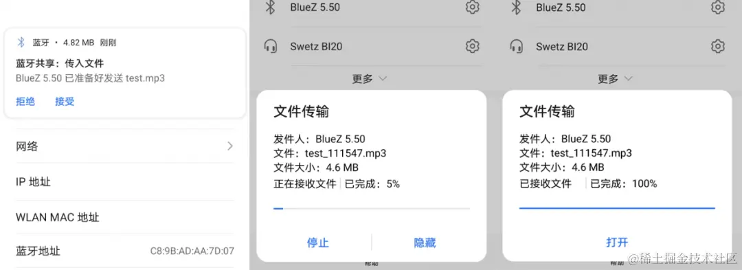 接下来,我们再将OK3568-C开发板中的文件通过蓝牙发给手机,测试开发板的蓝牙文件发送功能。这里通过发送一个MP3文件来测试。