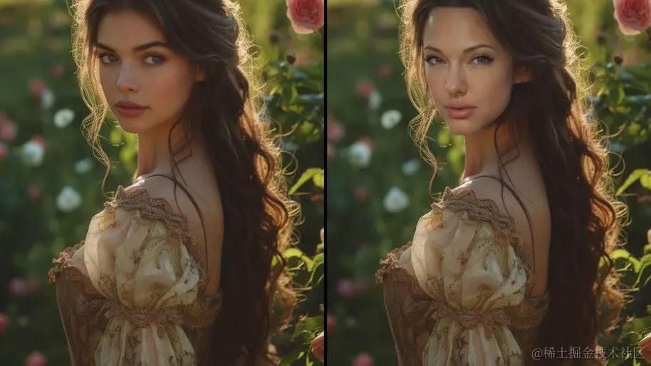 - 生成的图像中,Angelina Jolie 的特征——如弯曲的睫毛、蓝绿色的眼睛和性感的嘴唇——都得到了精准的呈现。