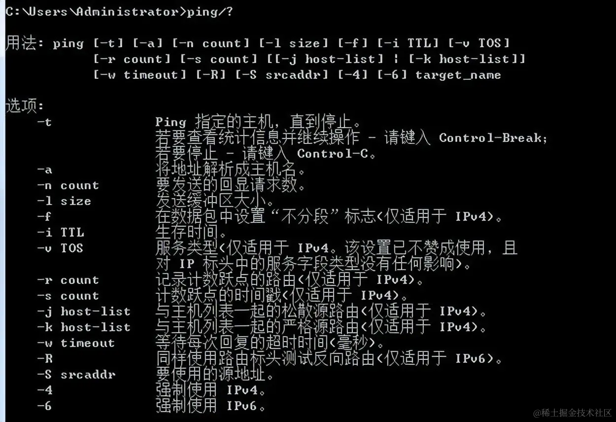 更多ping命令参数的应用,我们可以在命令行里输入:ping/? 能够查看到。