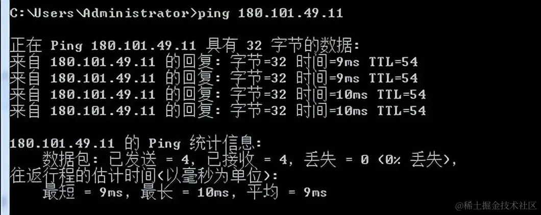 如果要不间断地返回数据包,那么就用ping -t来实现,这样就不断返回数据,直到管理员手动关闭,关闭的终止快捷键是Ctrl+C。