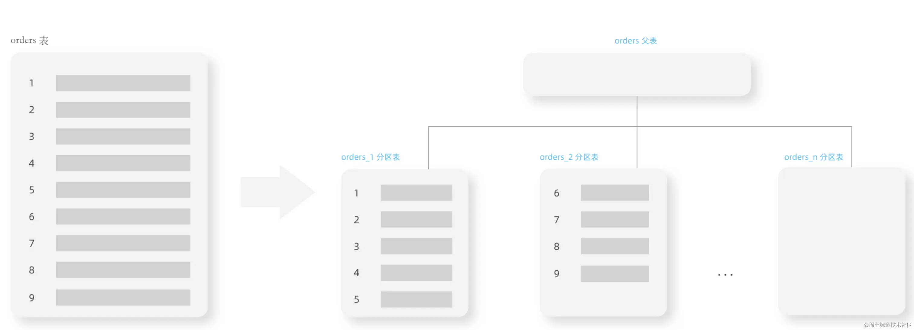 分区表就是根据分区策略,将数据数据分散到不同的子表中,