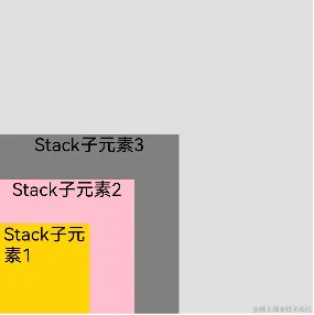Stack组件为容器组件,容器内可包含各种子组件。其中子组件默认进行居中堆叠。子元素被约束在Stack下,进行自己的样式定义以及排列。
