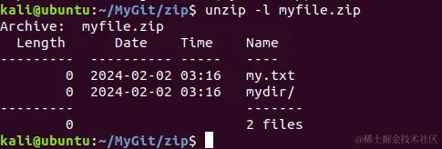 unzip -l 文件名.zip