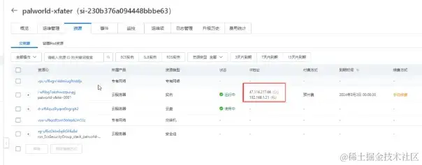 资源中是我们游戏服务器所占用的一些服务器单元情况,包括云服务器,云盘和网络资源相关。