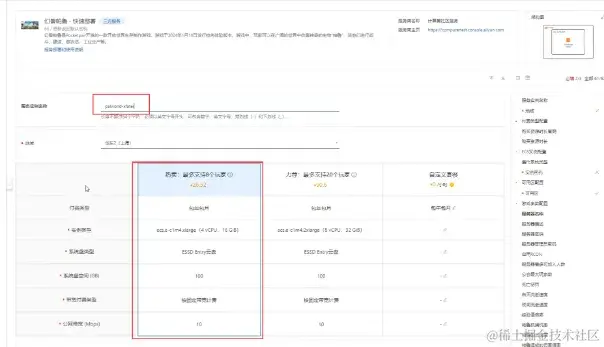 接着我们点击一键部署,就达到了这个参数配置页面,我们填写服务器名称,选择区域,了解不同规格服务器的配置情况。