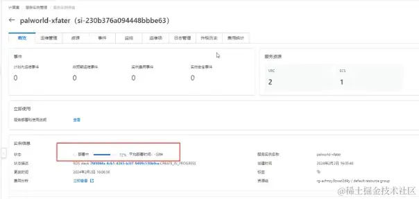 支付宝完成后,大家可以看到我们的资源就创建了,这里显示出我们部署游戏的服务器资源,其中显示正在部署中,稍作等待即可,大概3-5分钟即可部署完成。