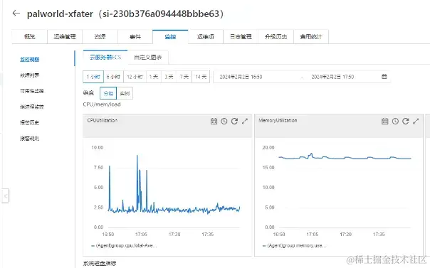 我们也可以在监控里面,随时查看服务器的实时状况,如果压力太大,可以升级配置或者减少游戏人数,包括并发数量。