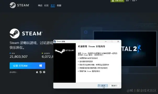 好了,大概部署完毕后。如果还没有安装游戏客户端的朋友,可以进入STEAM官网,包括注册用户,登录用户,下载客户端。