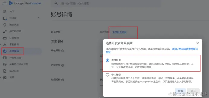 在这个规定实施之初,有的开发者尝试出的一个可能的解决方案是:更改账号类型,即将个人开发账号更改成企业账号。账号更改过程并不复杂,如下图所示,只需在更改的过程中重新填入一些账号所需的常规信息,且不用提供企业账号所需的邓白氏码。但账号更改后,能成功绕过连续14天测试的概率大约为40%,并非100%。