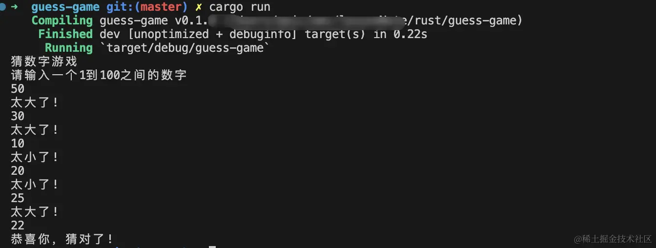 猜数字游戏了解rust,我们使用std与rand这两个库实现了输入数字猜数游戏 -
