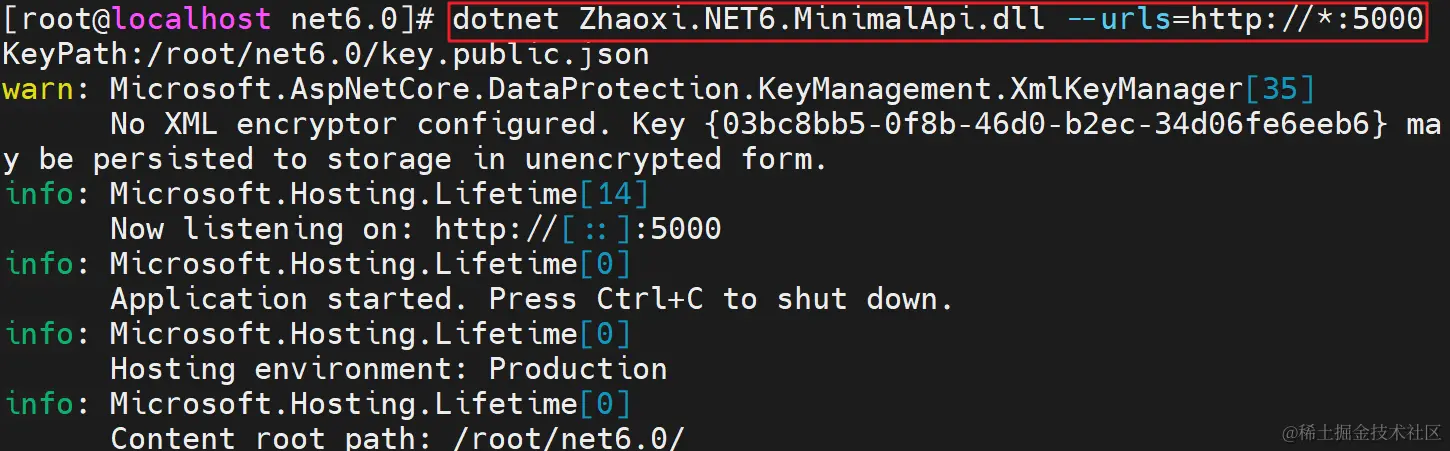 dotnet Zhaoxi.NET6.MinimalApi.dll --urls=http://*:5000