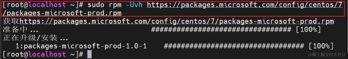 sudo rpm -Uvh https://packages.microsoft.com/config/centos/7/packages-microsoft-prod.rpm