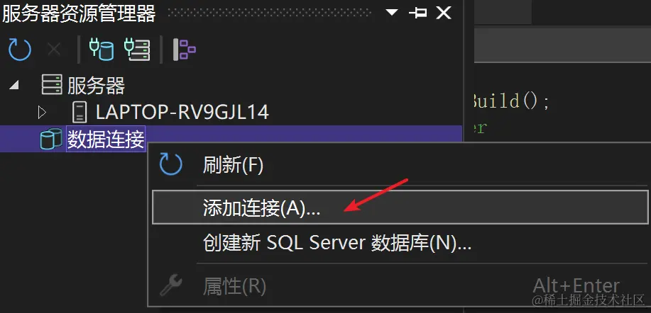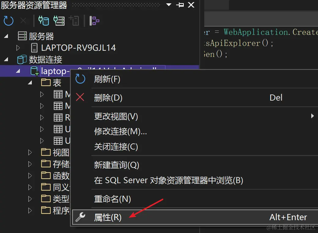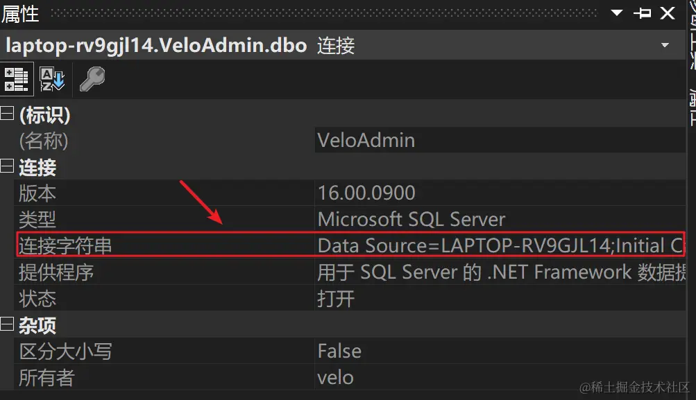 VisualStudio中数据库连接串查看技巧 九极天 2024-02-03 200 阅读1分钟 VisualStudio中数据库连接串查看技巧 1、打开服务器资源管理器 2、添加连接 3、选择sql server 4、输入相关连接数据 5、点击测试连接,点击确定 6、服务器资源管理器中会多一个数据连接,在里面可以看到对应的表 7、查看连接属性,可以直接看到连接字符串,可以直接复制出来