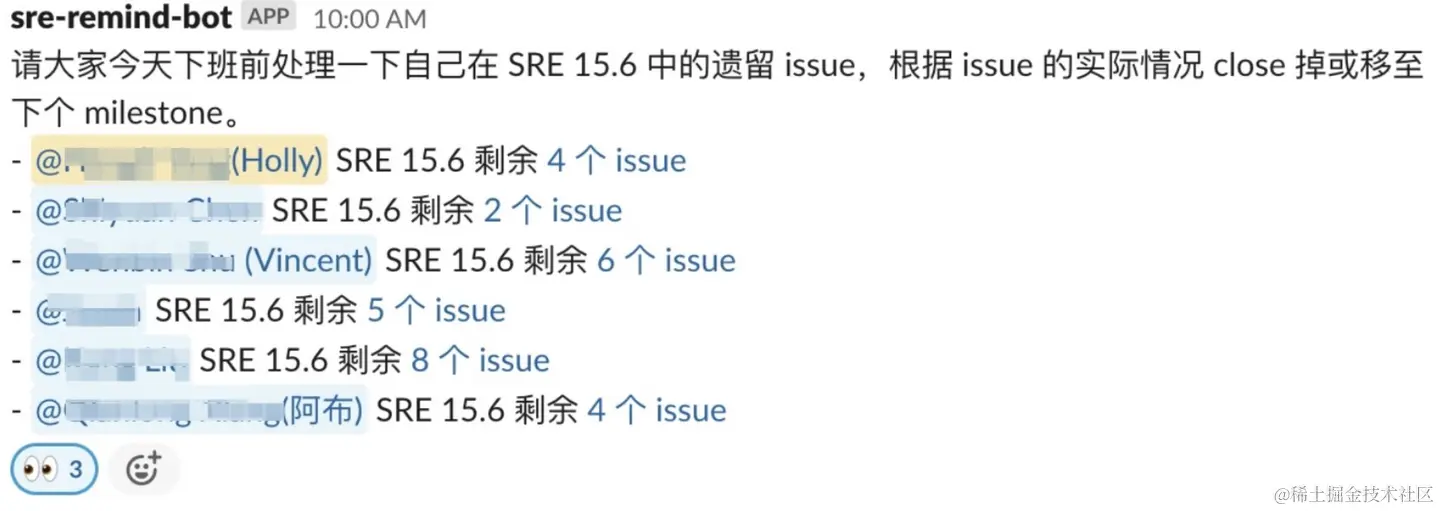 - SRE 的工作内容也是按照 milestone 来管理日常的工作,周期也是固定的,Manager 可能会忘记 milestone 快结束了,但是程序不会忘记;
