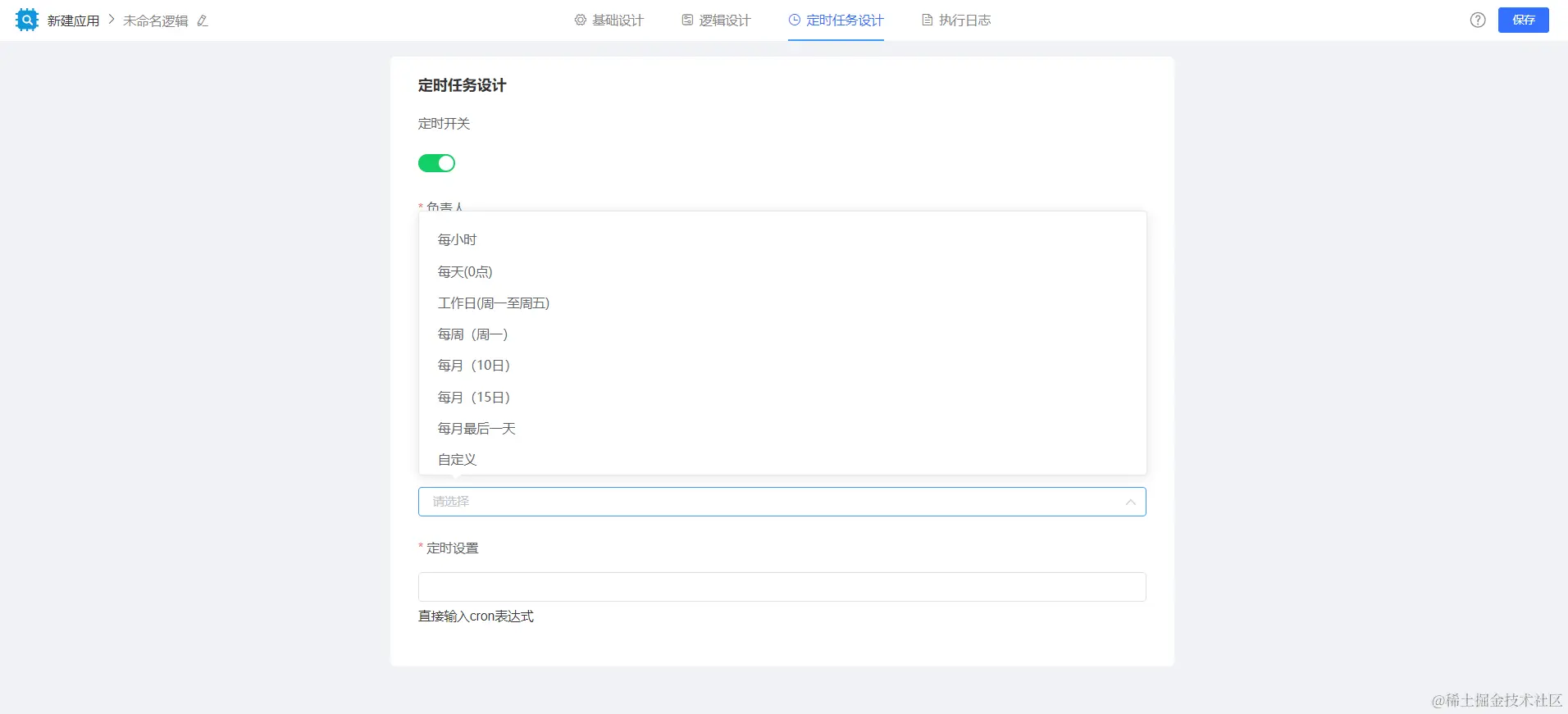 注意:在单独业务逻辑处创建的逻辑可配置定时执行。