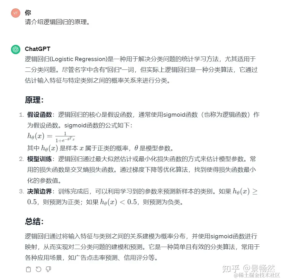 下面,小井以机器学习中的经典算法:“逻辑回归”为例,通过不断改进Prompt来让ChatGPT由浅入深地为我们介绍这一经典算法。