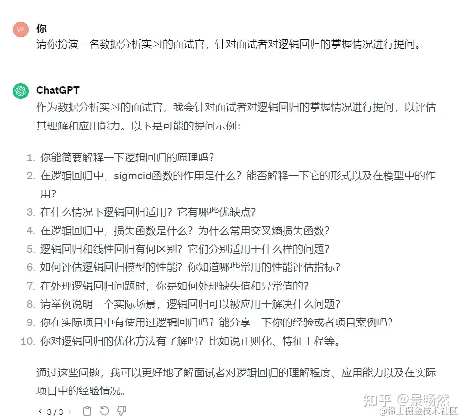 使用公式:请你扮演「角色」,完成「任务」。 比如,你是一名数据分析实习的面试官,希望对面试者对逻辑回归的掌握情况进行了解,因此,你可以要求GPT扮演一名数据分析面试官,对面试着进行提问。(同理,你也可以要求GPT假装一名面试者,对面试官的特定问题做出回答)