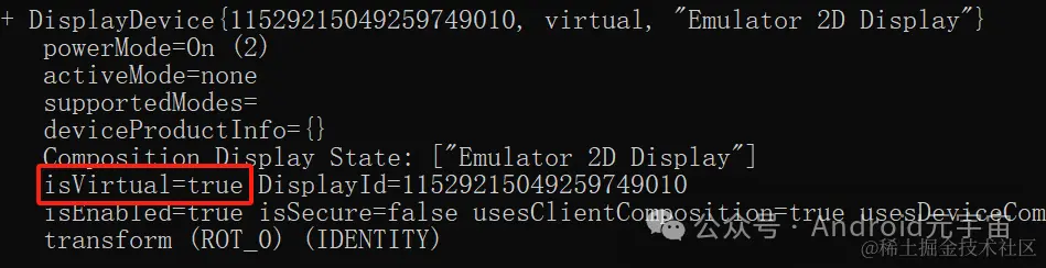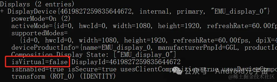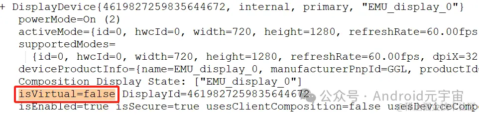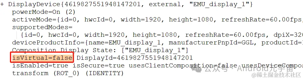 dumpsys SurfaceFlinger看三个Display的信息: 三块屏幕都是 isVirtual=false