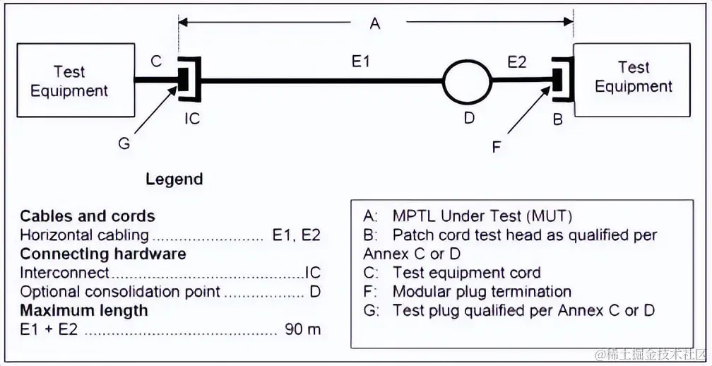 这里需要提及的是北美工业技术标准化委员会2018年发布的ANSI/TIA 568.2-D标准,标准中新增加了一个新的连接架构——MPTL模块化插座端接链路(英文名:Modular Plug Terminated Link)。意思是指在一端接了一个活动连接器(模块化水晶头)的PL。