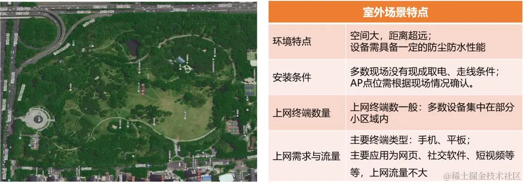 选择室外AP。室外场景要采用室外AP进行无线覆盖,室外AP的防尘防水等级高,功率大,覆盖范围广,单个AP可覆盖半径100~300米。有超远距离室外场景,可以通过无线网桥取代线缆,实现主干网络传输。