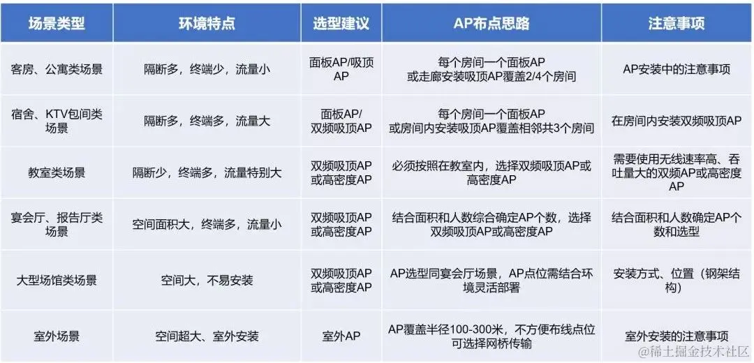 不同类型的无线AP,有着不同的适用场合,总结如下: