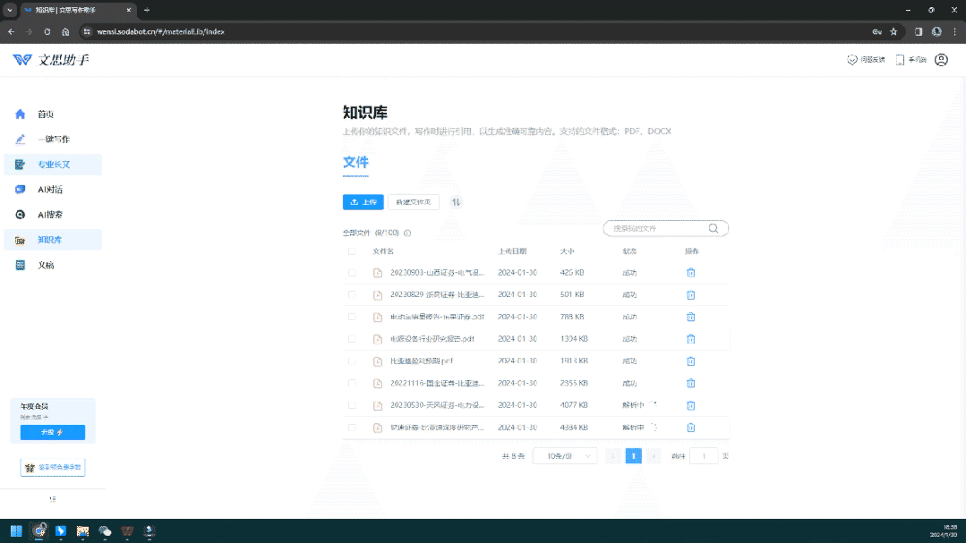 用户上传资料自建知识库