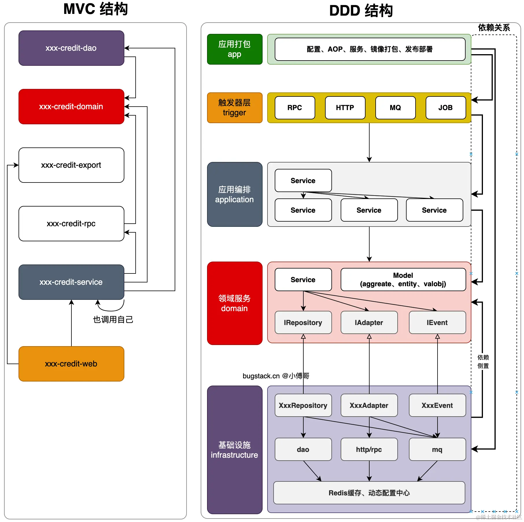 从APP层、触发器层、应用层,这三块主要对领域层的上下文逻辑封装、触发式(MQ、HTTP、JOB)使用,并最终在应用层中打包发布上线。这一部分的都是使用的处理,所以也不会有太复杂的操作。